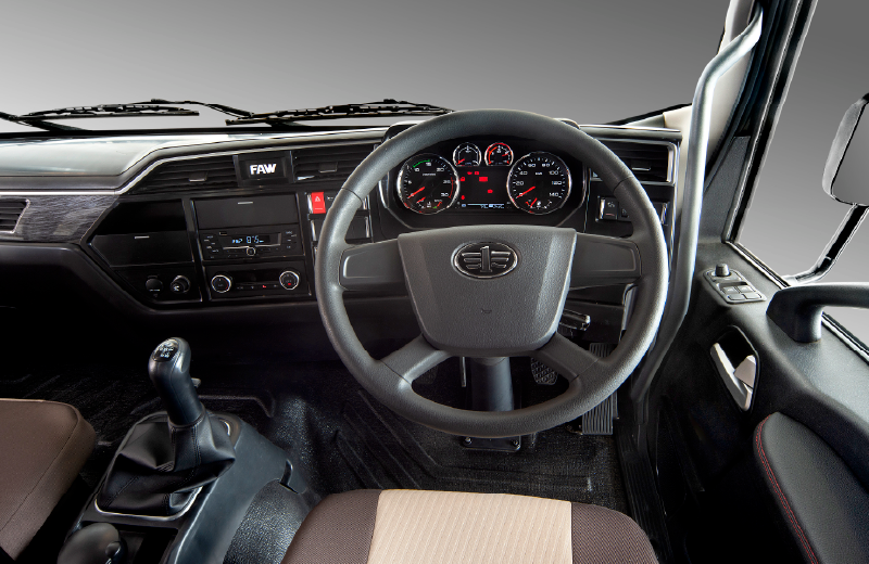 Spacious, air-conditioned semi-sleeper cab
